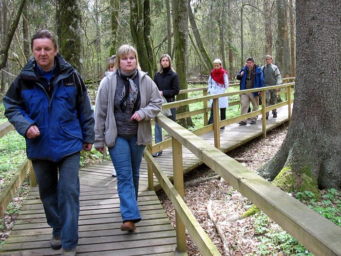 Польские натуралисты приехали посмотреть заповедную природу и охраняемую Беловежскую пущу. Но туристические маршруты проложены так, что по пути следования автобуса такой природы фактически нет. Повсюду вырубки, вырубки, пни, пни, пни… В Европе это называется – "бумажный" Национальный парк (т.е. Национальный парк на бумаге, не в натуре). |