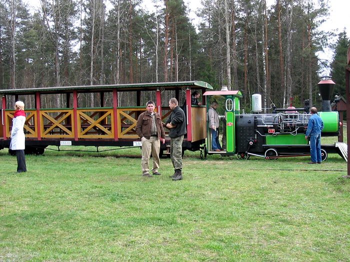 | На одной из лесных полян за пределами абсолютно заповедной территории размещен небольшой туристический аттракцион – паравозик с вагонами. Именно такие паравозики 100 лет назад вывозили из Беловежской пущи древесину. Сейчас на отдельных участках они используются для катания туристов. |