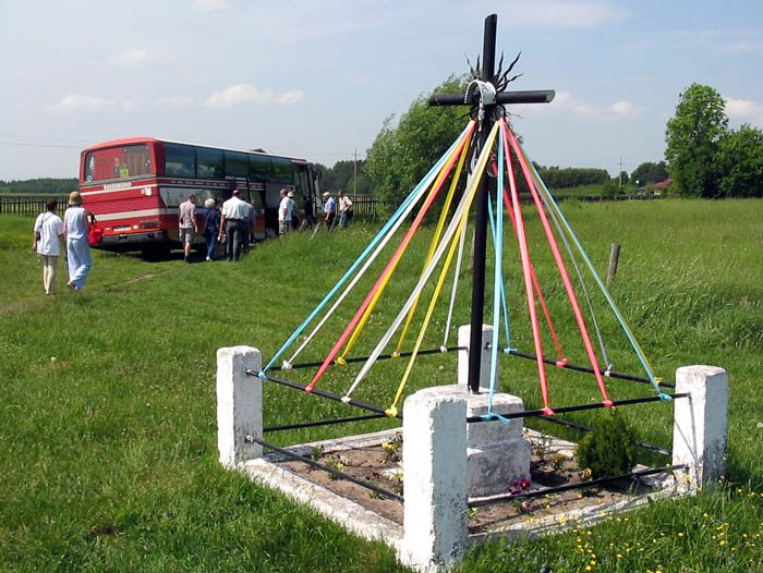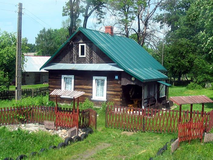 | Крест возле реки Нарев на перекрестке дорог. | Так традиционно выглядят домики сельских жителей в пущанских деревнях. |