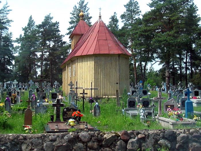 | Так традиционно выглядят домики сельских жителей в пущанских деревнях. | Кладбище и капличка. |